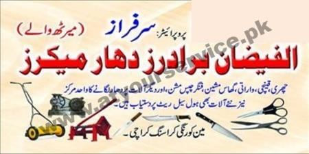 Al Faizan Brothers are located on Main Korangi Crossing, Karachi. It provide service for sharpening the knives scissors and other daily use tools.