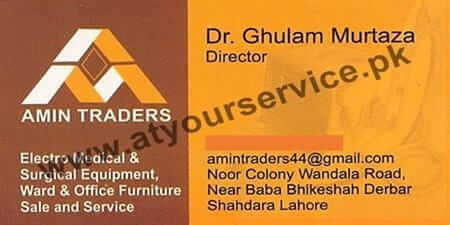 Amin Traders is located in Noor Colony Wandala Road, Lahore. We deal with electromedical and surgical equipment, office furniture, etc.