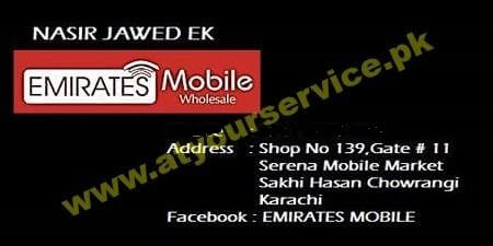 Emirates Mobile is located in Serena Mobile Market, Sakhi Hasan Chowrangi, Karachi. It deals all brands of smart phones mobiles specially all range on iPhone and Samsung cellphones.