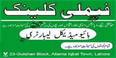 Family Clinic & Bio Medical Laboratory is located in Gulshan Block, Allama Iqbal Town, Lahore. Dr. Fehmeena Ashfaq (Medical Specialist) and Dr. Muhammad Saqib (Child Specialist) are available in this clinic. All kind of medical tests are also carried out.