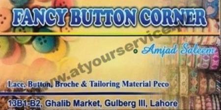 Fancy Button Corner is located in Ghalib Market, Gulberg III, Lahore. We sell laces, buttons, broaches, and all other tailoring material.