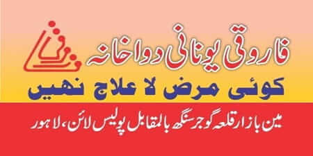 Farooqi Unani Dawakhana is located in Main Bazar, Qila Gujjar Singh, Lahore. Qualified Hakeems Farooq Ahmed Rana and Hakeem Qamar Saeed Rana are available for medical consultation. Unani medicines, herbal medicines and all kind of hers are also available.