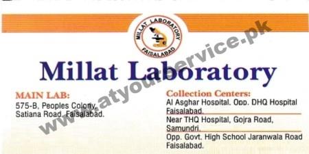 Following are the sample collection centers of Millat Laboratory in Faisalabad: