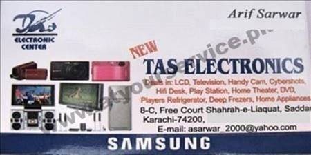 New TAS Electronics is located in Free Court Shahra e Liaquat, Saddar, Karachi. We deal with LCD TV, Handycam, Cybershots, Playstations, Home Theater, DVD Players, Refrigerators, Deep Freezers, and Home Appliances.