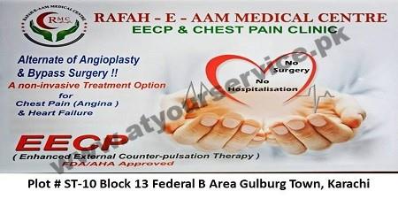 Rafah e Aam Medical Centre is located in Block 13, FB Area, Gulberg Town, Karachi. It is a General & Orthopaedic facility in the area.