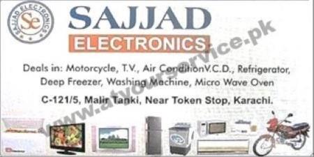 Sajjad Electronics deals with motorcycle, TV, airconditioner, refrigrator, deep freezer, washing machine, microwave oven, and a lot more. All items are available on cash payment as well as on installments.