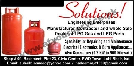 Solutions Engineering Enterprises is located in Civic Centre, PWD, Islamabad. It is a manufacturer, contractor and whole sale dealer of LPG Gas and LPG Parts.