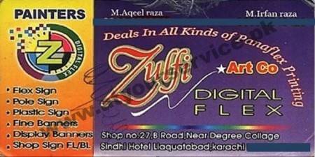 Zulfi Art Co. is located on B Road, Liaquatabad, Karachi. It deals in all kind of panaflex printing and outdoor advertising boards and banners.