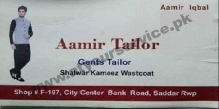 Aamir Gents Tailors is located on Bank Road, Saddar, Rawalpindi...