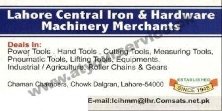 Lahore Central Iron & Hardware Machinery Merchants – Chaman Chamber, Dalgran Chowk, Lahore