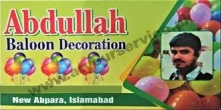 Abdullah Baloon Decoration is located in New Aabpara, Islamabad...