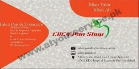 Eden Pan Shop is located near Kashmir Bridge, Eden Road, Zia Town, Faisalabad..