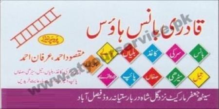 Qadri Baans (Bamboo) House is located in Seth Jafar Market, Satyana Road, Faisalabad. We sell a..