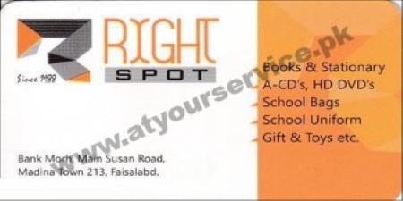 Right Spot is located at Bank Mor, Susan Road, Madina Town, Faisalabad. We deal with books &..