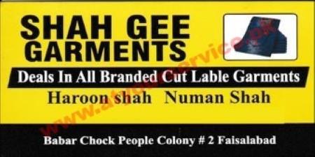 Shah Gee Garments is located at Babar Chowk, People's Colony 2, Faisalabad. We deal with all br..