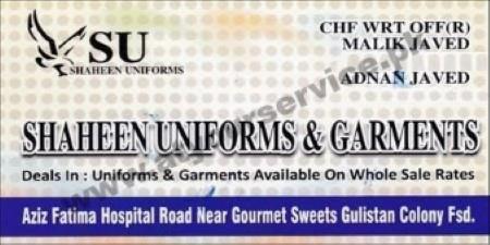 Shaheen Uniforms & Garments – Aziz Fatima Hospital Road, Gulistan Colony, Faisalabad
