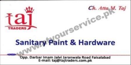 Taj Traders (Sanitary Paint & Hardware) is located on Jaranwala Road, Faisalabad...