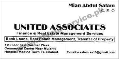 United Associates, Finance & Real Estate Management Services – Niamat Plaza, Commercial Centre, Madina Town, Faisalabad