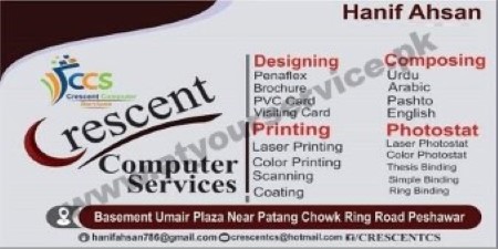 Crescent Computer Services is located in Umair Plaza, Patang Chowk, Ring Road, Peshawar. We pro..