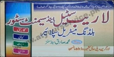 Laraib Steel & Cement Store is located on Kashmir Road, Darah, Mansehra. We supply all kind..