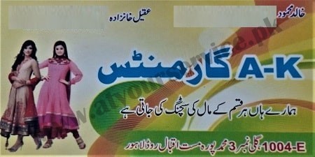 A K Garments – Mast Iqbal Road, Muhammad Pura, Lahore