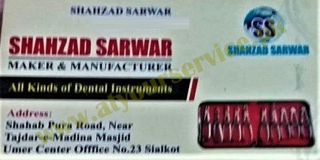 Shahzad Sarwar Maker & Manufacturer (Dental Instruments) – Umer Centre, Shahab Pura Road, Sialkot