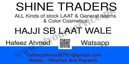 Shine Traders are located in Ranchore Lines, Karachi. We deal with all kinds of stock Laat..