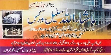 Masha Allah Steel Works – Ali Plaza, Pakistan Town, Islamabad