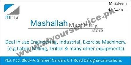 Masha Allah Machinery Store is located in Shareef Garden, GT Road, Daroghawala, Lahore. It deal..
