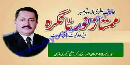 Mumtaz Noor Tangra Advocate HC (Arif Alvi Law Chamber) – Irfan Ansari Block, District Courts, Gulistan Housing Scheme, Multan