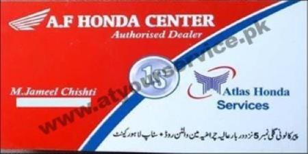 AF Honda Center is located in Pir Colony, Walton Road, Lahore. We provide Atlas Honda Services..