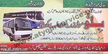 Billu Motors and Rent A Bus Service is available from Faisalabad to all over Pakistan. We deal ..